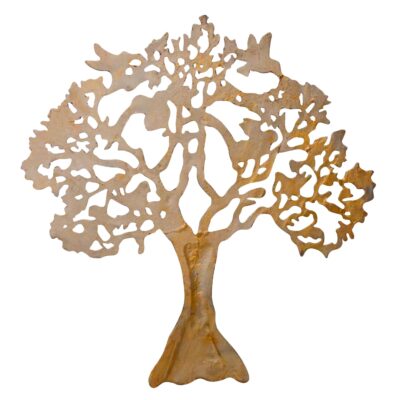 Bring the vibrancy of nature indoors with this exquisite Aluminium “Tree of Life” Wall Decor. Featuring a stylized tree canopy bursting with autumnal hues of red, yellow, and green, this piece is accented by two serene white birds perched on its branches. Its artistic cutout design and colorful finish make it a cheerful addition to any living room, hallway, or bedroom wall.